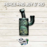 This 6″ rig is layered with fine silver frit glass and sandblasted deep.  It contains a mini showerhead perc and hits a champ!