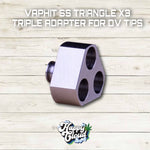 This Triangle X3 Triple Adapter is made from 316 stainless steel,it allows you to heat three DV tips with captive caps at once.